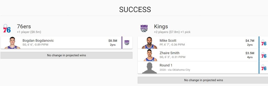 Sixers trade Mike Scott, Zhaire Smith, 2020 OKC 1st round pick to the Sacromento Kings for Bogdan Bogdanovic