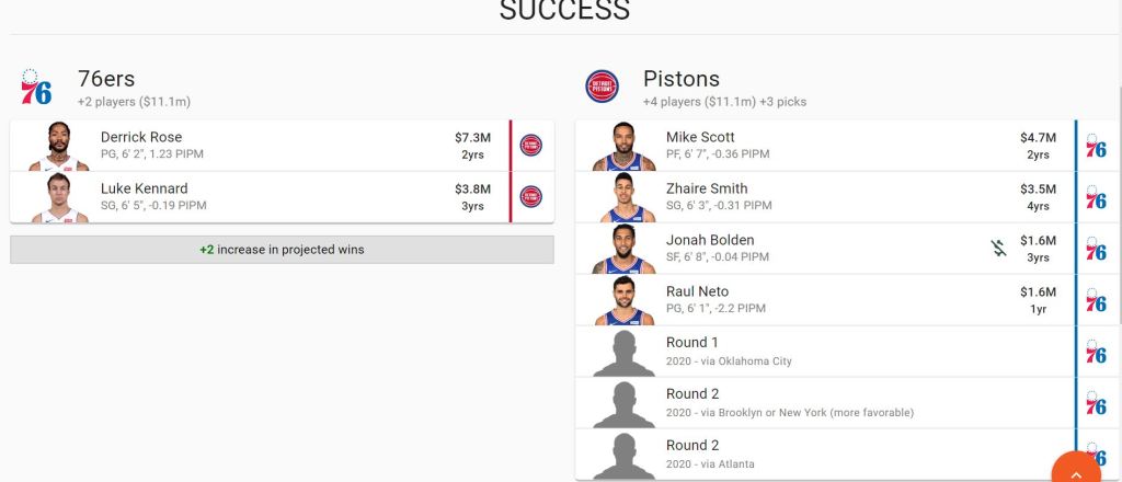 Sixers trade Mike Scott, Zhaire Smith, Jonah Bolden, Raul Neto, OKC 2020 1st round pick, NYK 2020 2nd round pick, ATL 2020 2nd round pick to the Detroit Pistons for Derrick Rose and Luke Kennard